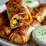Crispy eggrolls filled with a delicious medley of chicken, black beans, and corn, perfect as an appetizer or main dish.