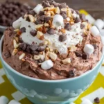 A nostalgic dessert that combines creamy chocolate pudding with fluffy whipped topping, mini marshmallows, and optional crunchy nuts.