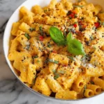 This creamy pasta dish pairs beautifully with a simple green salad tossed with balsamic vinaigrette or roasted veggies for added crunch. For added comfort, serve with some warm garlic bread to mop up every last bit of sauce.