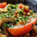 A comforting dish of creamy mushroom tomato herb rice that’s perfect for cozy evenings at home.
