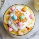 Delightful dessert cups layered with bananas, creamy pudding, and vanilla wafers, perfect for Easter celebrations.
