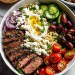 These Mediterranean Steak Bowls are not just a meal—they’re a celebration on a plate. The juicy, grilled steak, perfectly seasoned and bursting with flavor, pairs exquisitely with the colorful crunch of fresh veggies and the salty zest of feta cheese and olives. Each bite is a blend of textures and tastes that take you straight to a sunny Mediterranean marketplace. Plus, these bowls offer a great opportunity for customization. Whether you prefer quinoa over rice or want to add extra spices, these bowls cater to your cravings!