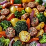 This Enjoy a Flavorful Roasted Veggie and Chicken Sausage Sheet is more than just a meal; it’s a way to embrace the simplicity of cooking at home. Let the vibrant colors, hearty flavors, and delightful aroma come together to create a beautiful evening meal that’ll fill you and your loved ones with warmth and joy. So roll up your sleeves, gather your ingredients, and let this recipe spark a culinary adventure in your kitchen! Happy cooking!